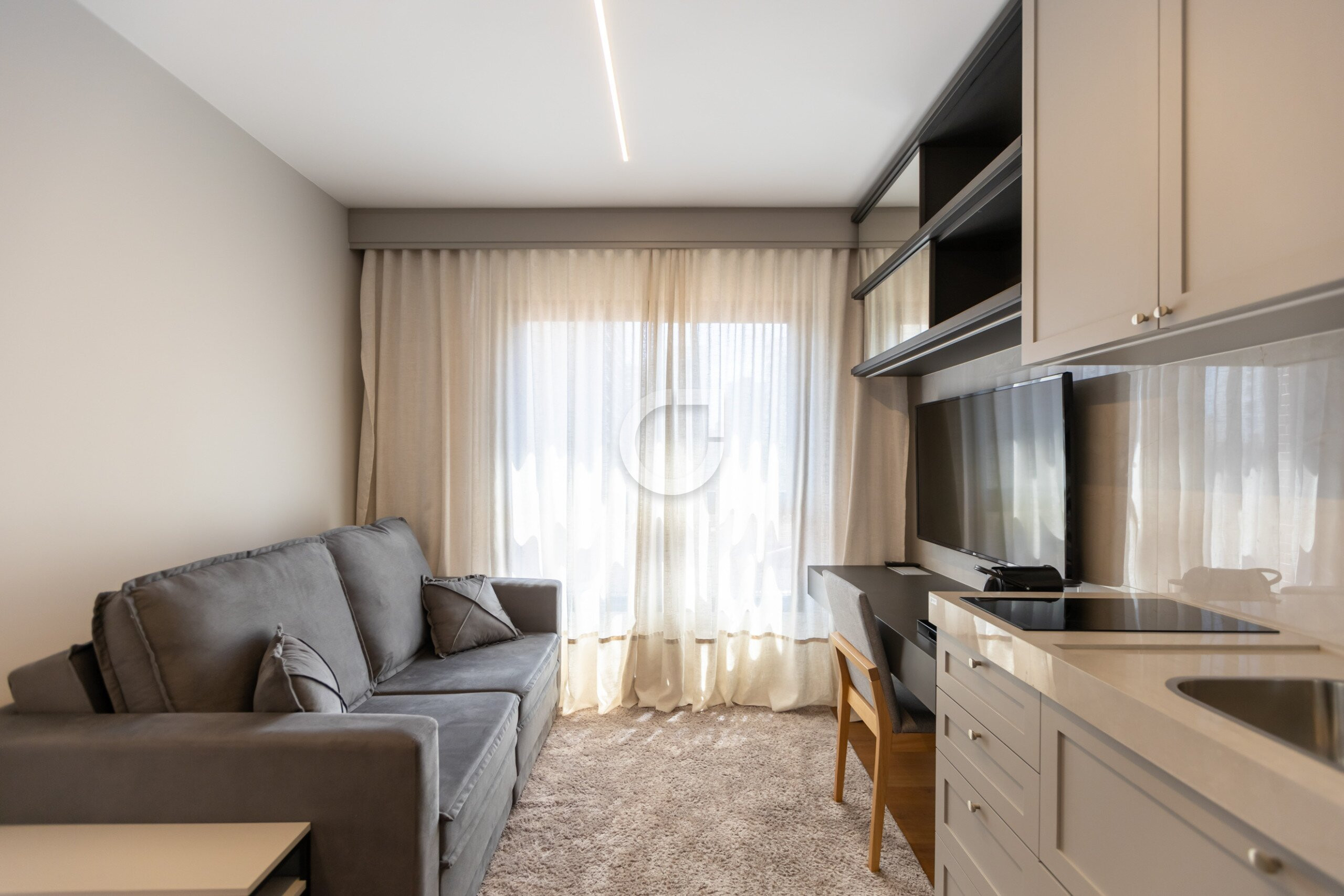 • Ambiente integrado (sala e cozinha)