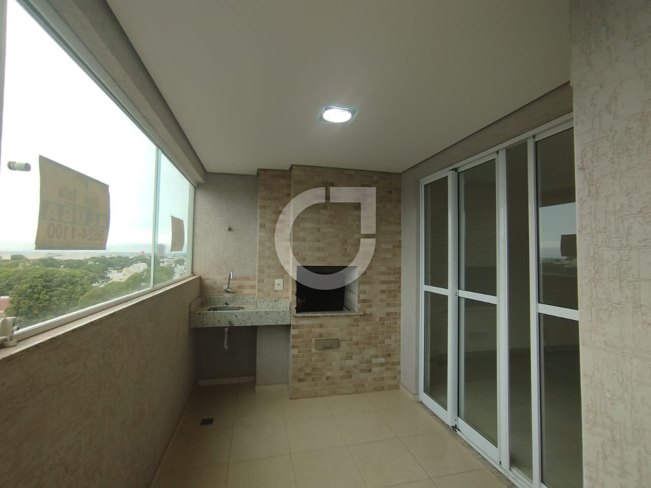 • Sacada fechada com vidro e churrasqueira a carvão.