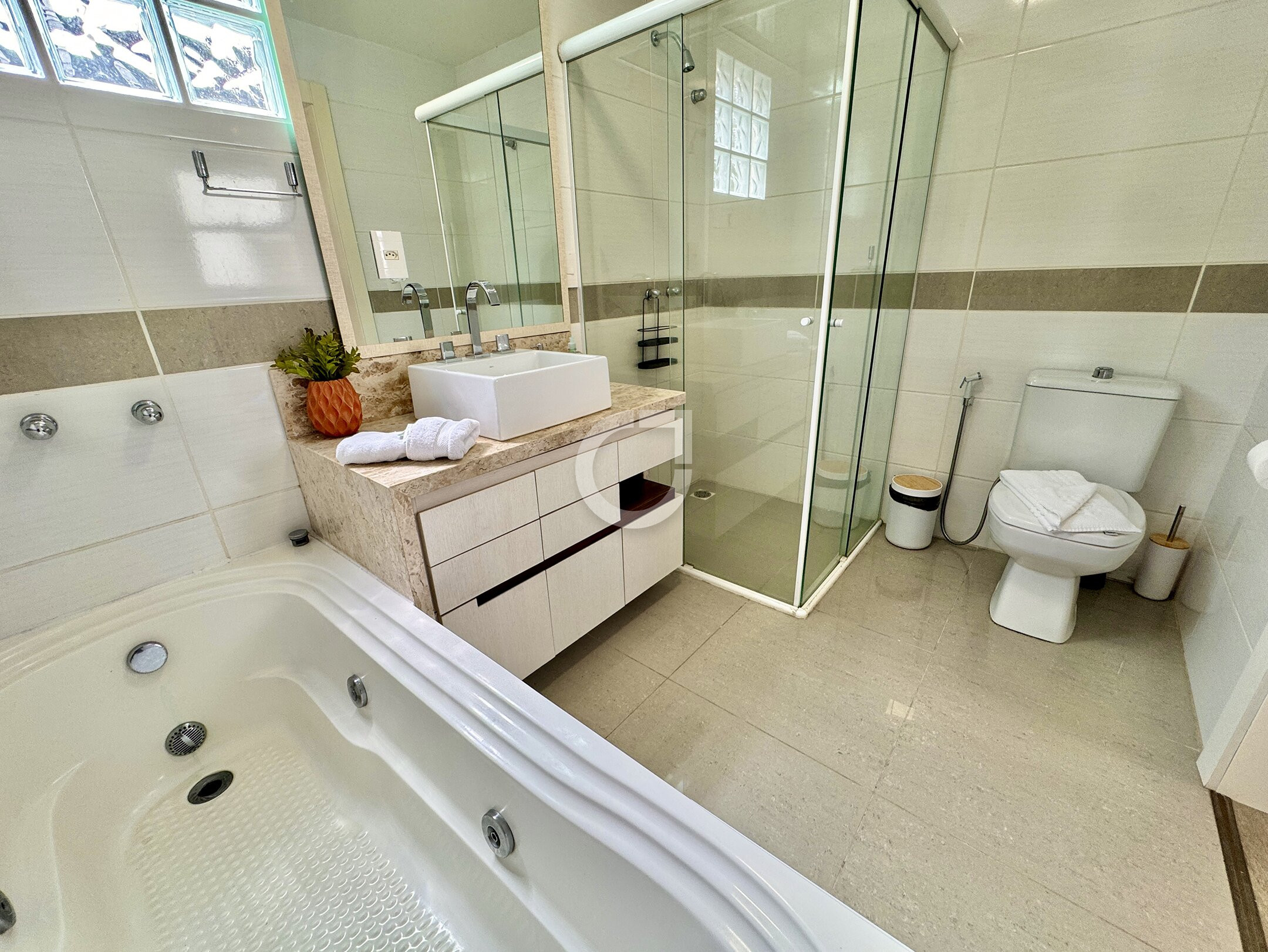 - Suíte com móveis planejados, hidro e ar condicionado;
